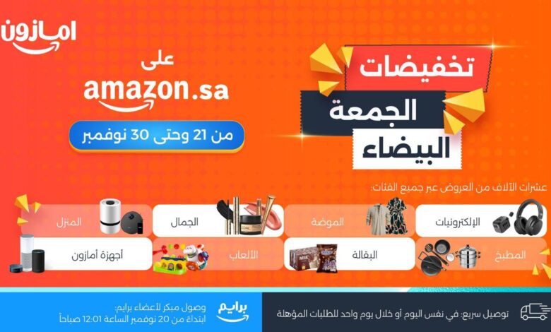 انطلاق تخفيضات الجمعة البيضاء على أمازون السعودية مع آلاف العروض الحصرية والخصومات اليومية وبتوصيل سريع