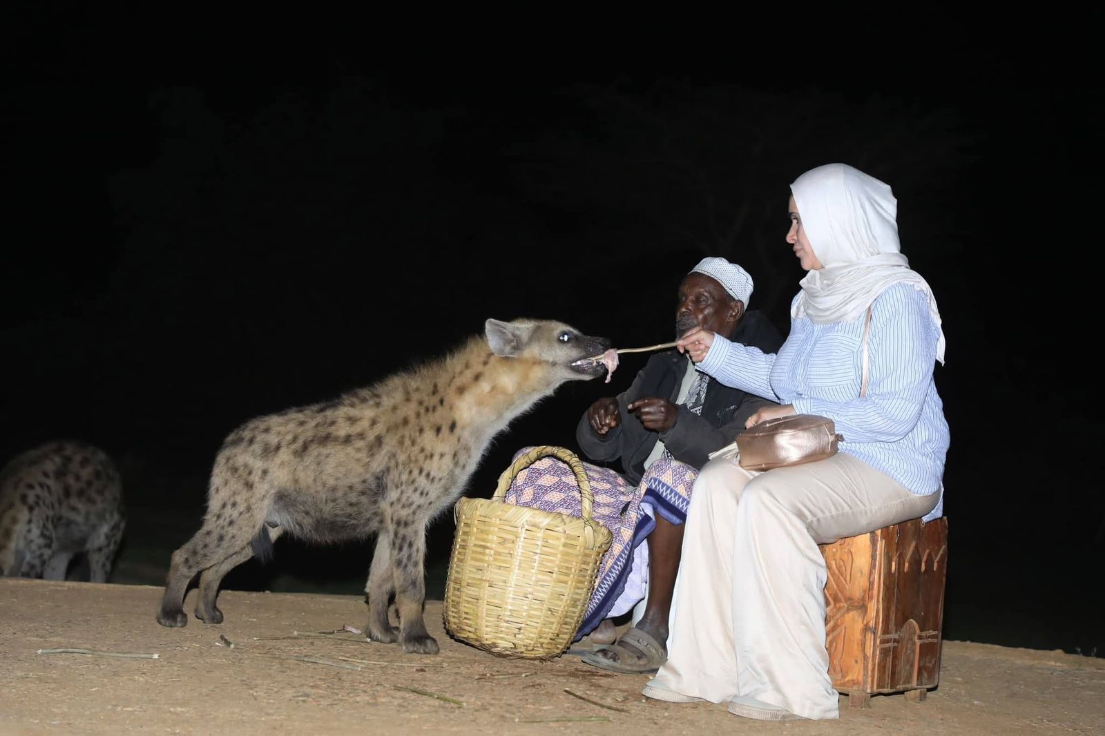 في واحدة من أغرب الظواهر العالمية تتجلى في هرر علاقة سحرية بين الإنسان والحيوان؛ فعند الليل ينادي رجل الضباع على هذه المفترسات بأسمائها عند أسوار المدينة ليطعمها اللحم بيده .
