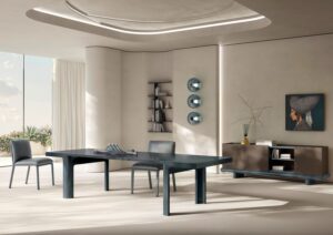 ويتميّز المشروع بتوليفة من المواد والقوامات المختلفة في لعبة هندسية من التداخلات والطبقات، تفتح المجال لاتجاهات واستخدامات متعددة، وتجمع بين الراحة والحرية في التكوين والاستعمال. تنسجم الأقمشة الناعمة وأشكال “أماما” مع رخام فيردي أنتيكا الأخضر الفاخر، فيما تتكامل قطع الأثاث والديكور ضمن لوحة ألوان مستوحاة من الأرض والبحر، لتقدّم تجربة حسية غامرة تعبّر عن فكرة المنزل المتناغم والدافئ. كما يشمل المشروع عناصر من قسم المعيشة والطعام ضمن المجموعة نفسها، مقدّماً مقاربة جديدة للحياة العصرية تجمع بين الجمال والمرونة والوظيفة.